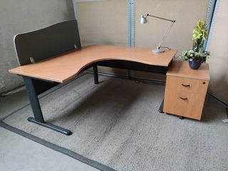 En très bon état. Structure métal anthracite, plateau et caisson en bois. Dimensions : 160 cm x 160 cm. Hauteur : 72,5 cm. Largeur côtés : 80 cm. Le plateau est d'une seule p