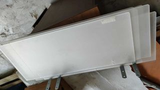 Lot de séparateurs en très bon état. Dimensions unitaires des séparateurs : 90 cm de large x 38,5 cm de haut. Les fixations sont fournies pour chacun des séparateurs. Les éq
