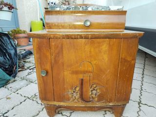 Meuble bois massif en chêne ou merisier bas rond 4 pieds 4 tiroirs Bon état