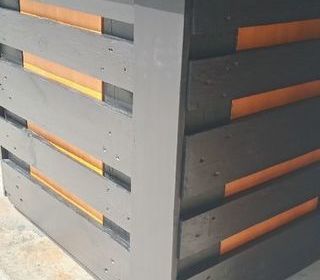 Meuble en forme équerre avec un dessus pour bar ou autres . Avec possibilité à l'intérieur rangement pour petits objets . Se déplace assez facilement .Bois teinté .