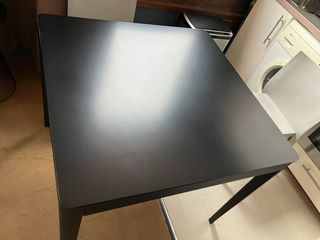 vend table carrée 92/92 piétement metal noir dessus verre dessus petites rayures sur le verre