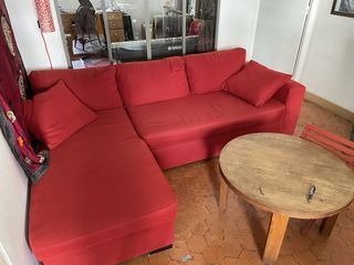 canapé d'angle 3 places bon état, avec méridienne et coffre de rangement