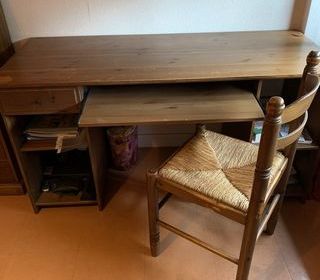 Vends bureau et chaise en bois Dim: 58x140x72 80 euros Possibilité d'une commode assortie