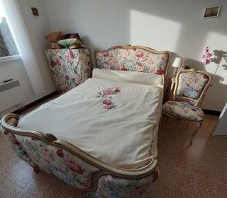 Pour cause déménagement et doublon, je vends un lit Louis XVI en bois massif couleur beige avec une chaise assortie. A venir chercher.