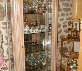 Belle vitrine dans les tons gris rosé Etat neuf 4 étagères en verre