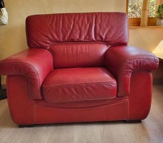 2 canapés en cuir un 2 places un 3 places en bon état couleur rouge