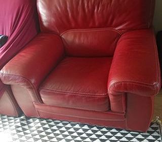 Bonjour Je vends le canapé d'une personne.cuir rouge. Boné etait.