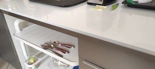 Plan de travail "effet verre blanc" ( voir photo) de 38mm d'épaisseur pour cuisine neuf. Lot de 2 pièces: - rectangulaire 2m50 x .0.64m - Angle de 0.95 x0.95 avec raccord de 0.6