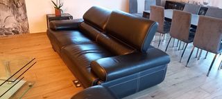 Canapé cuir noir - coutures blanches - Dossiers inclinables - Dim : 1m00 x 2m20. Pas de livraison - Possibilité vente avec canapé 2 places assorti 1m00 x 1m80