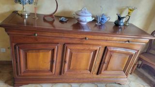 Vends buffet en merisier avec 3 tiroirs et 3 portes. L 195 cm, l 56 cm et H 97 cm Si vous etes intéressé il y a une table et un vaisselier qui va avec. A retirer sur place