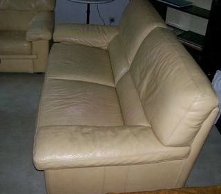 modèle ATLANTA. Buffle plein fleur , structure en bois massif ,tonnage mixte végétal et minéral. Suspension sangles élastiques avec 3 tiroirs. coulour beige crème. Canapé 195x86x9