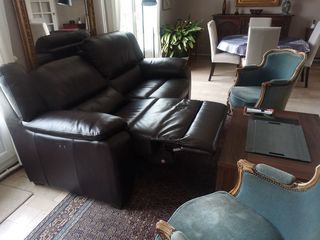 Canapé cuir vachette pleine fleur. Trois places fixes. Coloris chocolat foncé. Très confortable. Etat du neuf. Dimensions : Longueur 205, Profondeur 90, Hauteur 100. Cause changeme