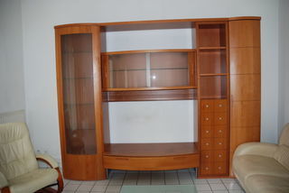 Living moderne voir photos, démonté pour faciliter le transport, dimensions longueur 2,90m hauteur 2,28m, profondeur 0,57 maxi, étagères, portes en verre et bois, tiroir, plateau p