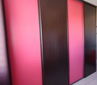 A vendre 2 portes de placard coulissantes de Lapeyre. Gamme Partition, Couleur Wengé sur la face extérieure, couleur crème à l'intérieur du placard, profilés couleur wengé. Vous