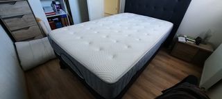 Je vends ce matelas et sommier 160x200 en parfait état. - Type de produit : Matelas et sommier - Dimensions : 160 x 200 cm - Matériau : Tissu - Couleur : Blanc - Démontable : Non E