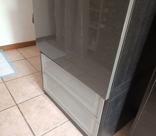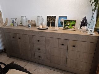 Meuble tv en bois massif, en noyer Longueur: 1450 mm Largeur: 515 mm Hauteur: 560 mm Prix: 350 euros à débatre