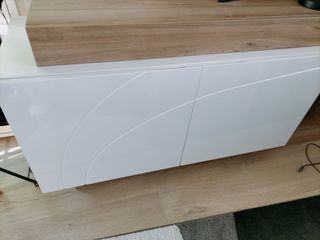 A vendre buffet salon 3 portes laqué blanc et bois