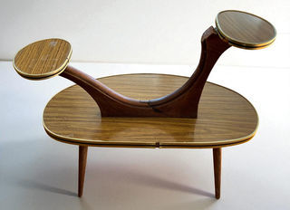 Porte-plantes bois et formica années 60 en bon état Dimensions : 63x35 cm Hauteur : 53 cm