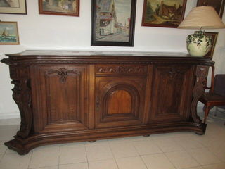 Meuble unique, fait par ébéniste, en bois de chêne massif, sculpté. Style Renaissance - Haute époque € 1990,- Très bien entretenu, en très bon état. Dimensions "hors normes" :