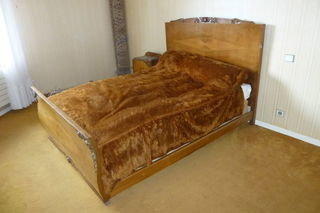 Vends un cadre de lit des années 1920 en bois, en bon état, avec un très beau décor de roses sculptées dans le bois. Convient pour un matelas standard 140 * 190 cm et n'importe q