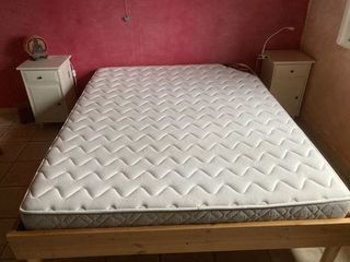 bonjour, je vends une mezzanine en fer couleur noir pour un matelas 140 ,elle est démontée ,le matelas en fait partie il est Legé ,vendu pas cher pour plus de renseignement je vais