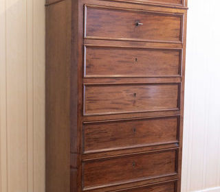 Vends un semainier Louis Philippe qui est également un secrétaire, en bois massif. 4 tiroirs réels et 3 faux tiroirs masquant le secrétaire comprenant 2 étagères intérieures et 3 t