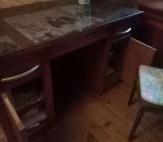 bureau ancien recouvert de protection en verre plateau très bon etat
