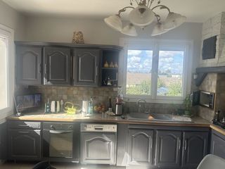 Vends cuisine, complète avec nombreux meubles de rangement, porte en bois, massif, couleur grise. Poignée inox avec Electromenager four encastrable, lave-vaisselle encastrable, évi