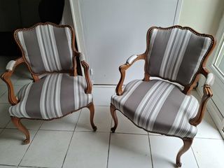 fauteuils de style Louis XV, relookés par un professionnel, s'intègrent parfaitement dans un salon, dans une chambre ou dans 1 bureau.