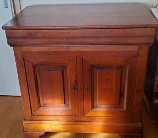 Je vends un meuble en bois massif, en très bon état, solide et de belle qualité. Dimensions : L 97 cm x P 60 cm x H 93 cm. Composition : 2 portes + 1 tiroir avec espace de rangem