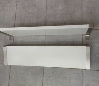 2 étagères murales 79.5 x 19.5 cm Epaisseur: 2.5cm Avec système de fixation et visserie La paire pour 20€ Si vous voyez l'annonce alors l'article est disponible. Laisser moi