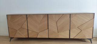 Buffet 4 portes modèle Eclipse de chez Mobilier de France Un meuble d'exception en chêne avec un éclairage LED réglable en intensité dans les portes (bouton pour allumer situé sur