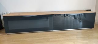 Meuble TV acheté chez Mobilier de France composé de 2 parties : un grand tiroir et une partie avec des étagères. Il mesure 2 mètres de long, 41 cm de hauteur et 50 cm de profondeur