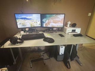 bureau 160cm X 80cm Bureau réglable en hauteur Dessus en verre blanc opaque 2 supports unité centrale (amovibles) Etagère 120cm X 25cm en alu et en verre blanc opaque Etagè