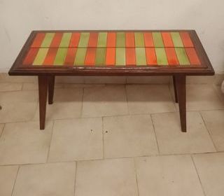 Table basse scandinave en palissandre massif pieds en Compas année 70 céramique émaillée en excellent état dimensions hauteur 50,5cm x longueur 92,5cm x largeur 40cm visible sur Ni