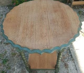 Ancien d'appoint en chêne laqué double plateau pieds torsadé dimensions hauteur 76cm x diamètre 60cm x plateau du bas 30cm x 30cm visible sur Nice prendre sur place pas d'envoi je