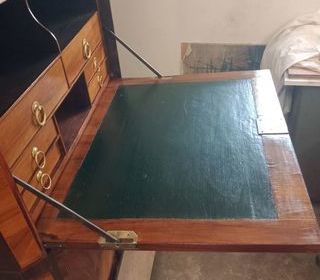 Ancien secrétaire louis XVI d'époque 19éme en marqueterie bois de rose et palissandre dessus marqueterie il ouvre par un abattant de Compas gainé de cuir d'écriture vert d'origine