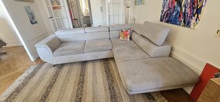 Canapé tissu gris clair en bon état , bonne qualité de mousse (densité 30), appuis tête réglables. Prix d'achat 2800€. J'ai enlevé 60pourcents du prix +300€ pour la dépose. 265