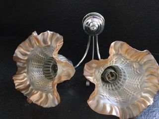 Applique murale années 1900 - Rare Très belle applique murale double des années 1900 avec abat jour en verre soufflé, rebord teinté et décor gravé. Sa forme est superbe ave