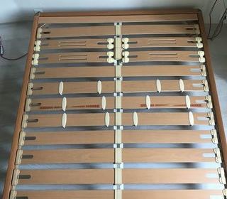 sommier sur pieds en bois d'ébénisterie de la marque TRECA à lames réglables sur amortisseurs en silicone au format 160X190X29cm en parfait état.