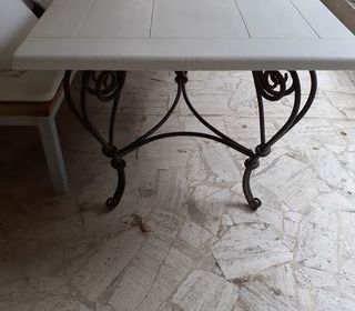 Table en chêne massif peinte en blanc Pieds en fer forgé Dimensions 185x90 Bon état