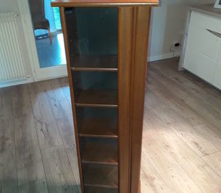 Tour de rangement 1 face avec porte vitrée pour CD Couleur chêne Dimensions : 28 x 38 x 124 cm Prix de vente : 20 €