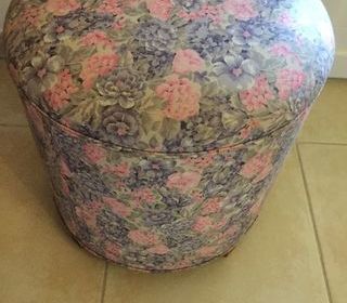 Vends un très joli pouf capitonné avec un tissus à fleurs rose - parme hauteur 43 cm diamètre 45 cm Prix 25 € Tel :