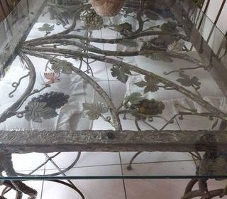 Vends table en verre en fer forgé + 6 chaises et rallonges Réalise par un ferronier d art réalisé par un ferronnier d'art. Valeur 3200 euros Table 500 euros 6 chaises 200.