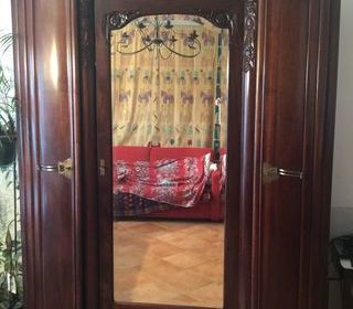 Chambre à coucher Acajou année 1970 (en bon état) Armoire 160 x 53 x 180 avec glace (3 portes) Lit 140 x 190 (avec tête de lit + sommier + matelas) 1 table de chevet