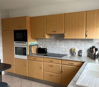 Cuisine équipée SCHMIDT en bon état Cuisine en L avec meubles hauts et bas Plan de travail stratifié Electroménager disponible selon vos besoins (réfrigérateur De Dietrich, four