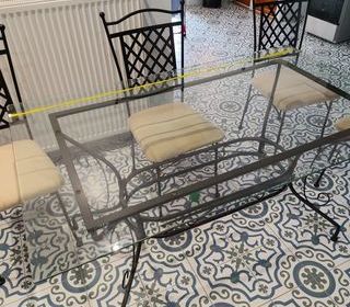 1 buffet , style Louis Philippe , 2 portes , 2 tiroirs , merisier , 175x96x53 . 1 table ronde + 2 allonges 4 chaises fond paillés
