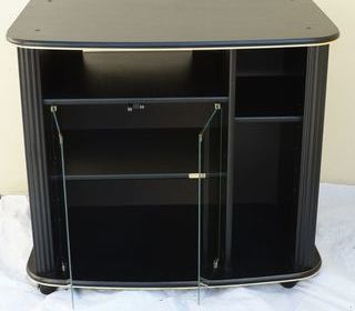 meuble hi-fi longueur 82cms largeur 42cms hauteur 70cms marque Berlioz création les ouvertures sont en verre épais état neuf sur roulettes