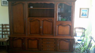 Living en chêne dimensions : Longueur 2m40 - Profondeur : 49,5cm partie haute - 59,5cm partie basse - Hauteur : 2m