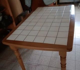 table de cuisine en bois carrelage +4 chaises dessus paille table 110/70 bon état
